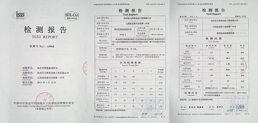 混合型塑膠跑道物理性能檢測(cè)報(bào)告