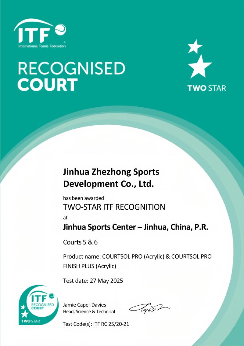 2025年9月,杭州寶力體育設(shè)施工程有限公司承建的金華體育中心網(wǎng)球場(chǎng)改造項(xiàng)目順利通過(guò)國(guó)際網(wǎng)聯(lián)2星認(rèn)證,標(biāo)志著該項(xiàng)目在場(chǎng)地建設(shè)標(biāo)準(zhǔn)、安全性能及賽事適配性方面達(dá)到國(guó)際權(quán)威認(rèn)可水平。