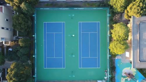 夏季高溫下硬地網(wǎng)球場(chǎng)維護(hù)需兼顧防滑與降溫。防滑方面,定期清潔表面去除藻類(lèi),使用防滑涂料或添加劑,確保排水系統(tǒng)暢通以避免積水。降溫可通過(guò)清晨灑水、覆蓋淺色遮陽(yáng)網(wǎng)、噴灑降溫劑或安裝噴霧系統(tǒng)實(shí)現(xiàn)。選擇淺色涂料反射陽(yáng)光,減少熱能吸收。