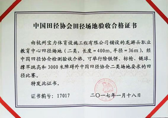 近日,由杭州寶力體育設(shè)施工程有限公司承建的龍游縣職業(yè)教育中心400米田徑場(chǎng)正式落成,田徑場(chǎng)的塑膠跑道和人造草足球場(chǎng)地完全按照國(guó)家標(biāo)準(zhǔn)田徑場(chǎng)進(jìn)行建設(shè),順利通過(guò)了中國(guó)田徑協(xié)會(huì)專(zhuān)家驗(yàn)收。同時(shí),獲得了專(zhuān)家組和當(dāng)?shù)仡I(lǐng)導(dǎo)的一致好評(píng),成為龍游標(biāo)桿型場(chǎng)地,為龍游縣職業(yè)教育中心提供了健全的體育場(chǎng)地,讓更多人有機(jī)會(huì)擁有專(zhuān)門(mén)的體育訓(xùn)練的場(chǎng)地。