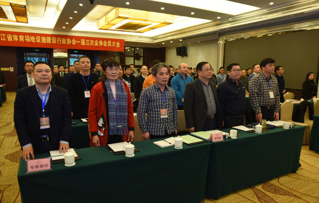 大會邀請了省政府相關部門領導與會指導,邀請了協(xié)會專家?guī)烊w專家、顧問和協(xié)會常年法律顧問列席大會,還邀請了協(xié)會所在地民主黨派——九三學社的領導列席了會議。會議由副會長杭州寶力體育設施工程有限公司付偉峰主持,大會在雄壯的國歌聲中開幕。
