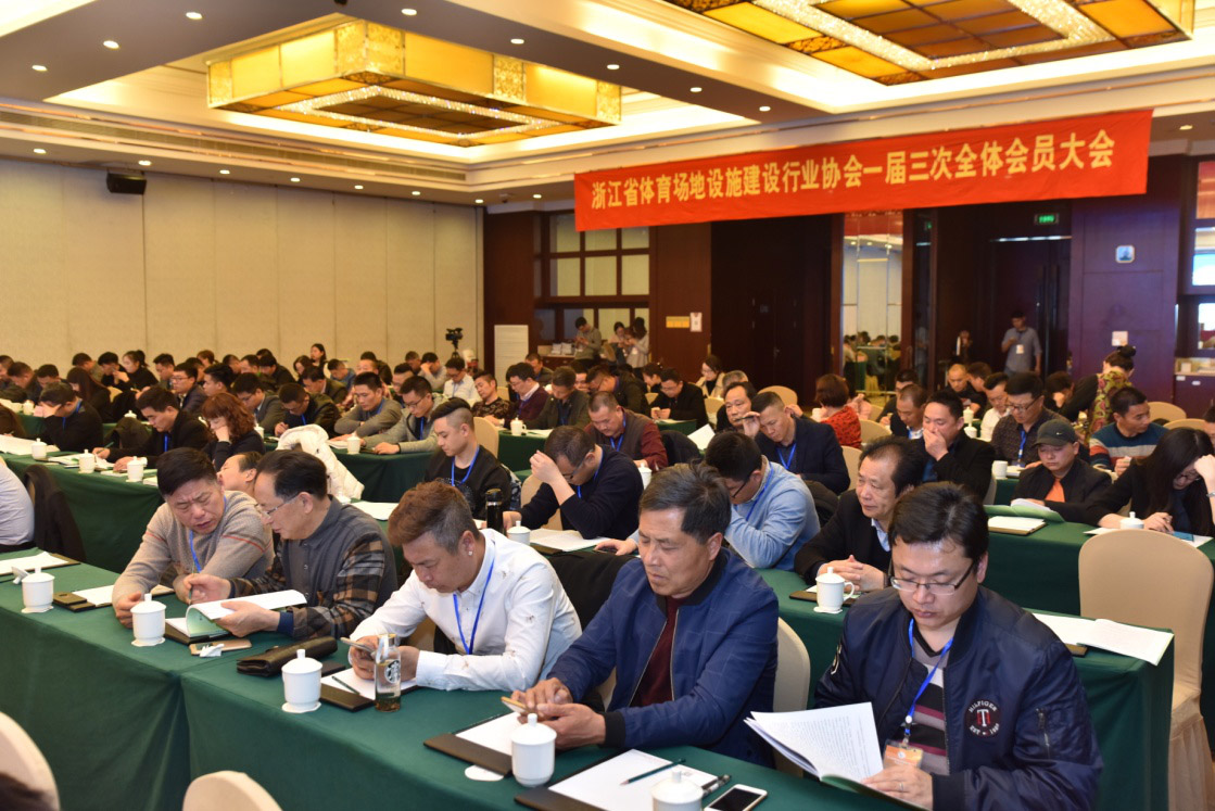 三月十九至二十日,緊隨全國兩會順利閉幕,浙江省體育場地設施建設行業(yè)協(xié)會一屆三次全體會員大會,在杭州寶盛水博園大酒店如期召開。