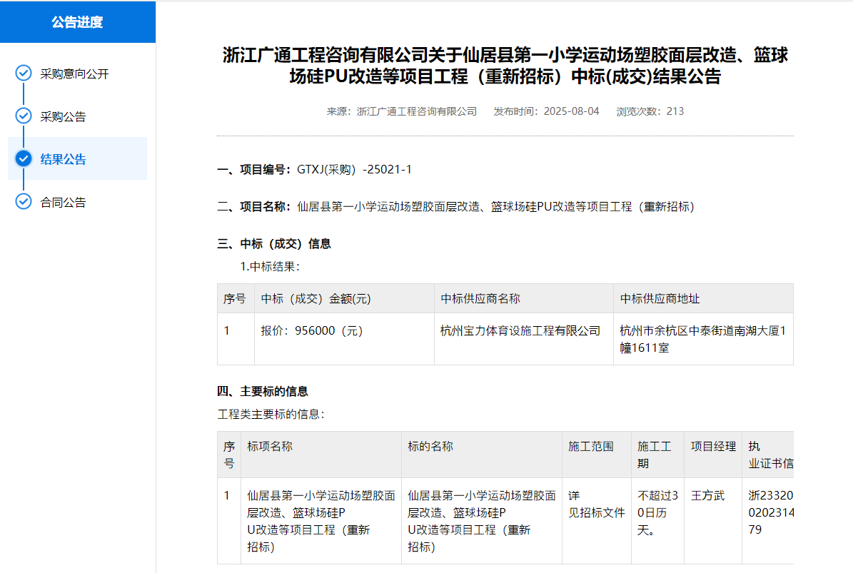 二、項目名稱:仙居縣第一小學運動場塑膠面層改造、籃球場硅PU改造等項目工程(重新招標)