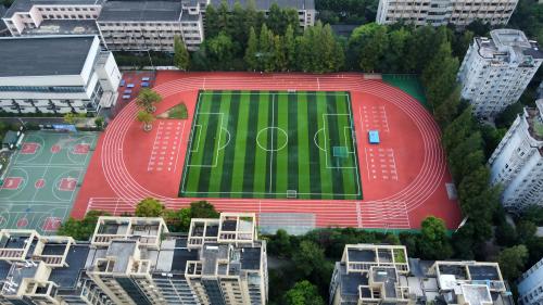2023年由杭州寶力體育設(shè)施工程有限公司承建的杭州師范大學(xué)附屬中學(xué)400米半預(yù)制塑膠跑道,人造草足球場(chǎng)以及采用EPDM環(huán)保顆粒鋪設(shè)的多功能運(yùn)動(dòng)地面,為學(xué)校體育教學(xué)與活動(dòng)提供了安全、專業(yè)的運(yùn)動(dòng)環(huán)境。