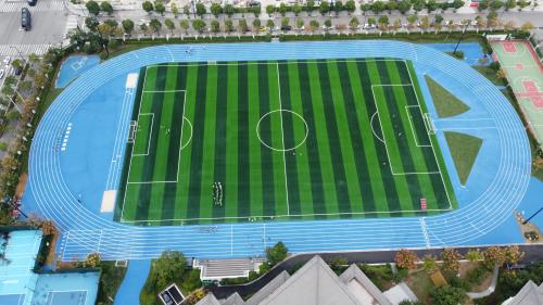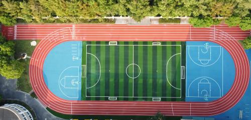 2024年由杭州寶力體育設(shè)施工程有限公司承建的舟山綠城南海實(shí)驗(yàn)學(xué)校400米透氣型跑道項(xiàng)目,采用國(guó)際標(biāo)準(zhǔn)藍(lán)色跑道搭配白色分道線;內(nèi)設(shè)綠色人工草坪足球場(chǎng),標(biāo)線精準(zhǔn)。周邊配建紅綠籃球場(chǎng)、標(biāo)準(zhǔn)化網(wǎng)球場(chǎng)及生態(tài)綠化帶。
