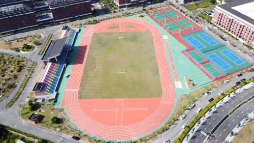 2024年由杭州寶力體育設(shè)施工程有限公司承建的溫州醫(yī)科大學(xué)洞頭校區(qū)項(xiàng)目,含標(biāo)準(zhǔn)塑膠跑道、多彩看臺(tái)及籃球場(chǎng)等,周邊紅磚建筑與綠化帶相映,營(yíng)造活力健康的校園氛圍,滿足多樣化體育需求。