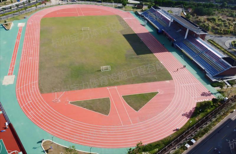 2024年由杭州寶力體育設施工程有限公司承建的溫州醫(yī)科大學洞頭校區(qū)項目,含標準塑膠跑道、多彩看臺及籃球場等,周邊紅磚建筑與綠化帶相映,營造活力健康的校園氛圍,滿足多樣化體育需求。
