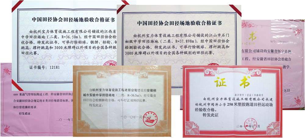 寶力16年塑膠跑道、塑膠籃球場施工經(jīng)驗、08年奧運會鐵人三項預制型塑膠跑道建設,體育設施行業(yè)一級能力認證、12項施工設備專利、中國田徑協(xié)會會員、同時具備體育設施市政房建資質(zhì)、全國體育場地工程綠色施工單位。