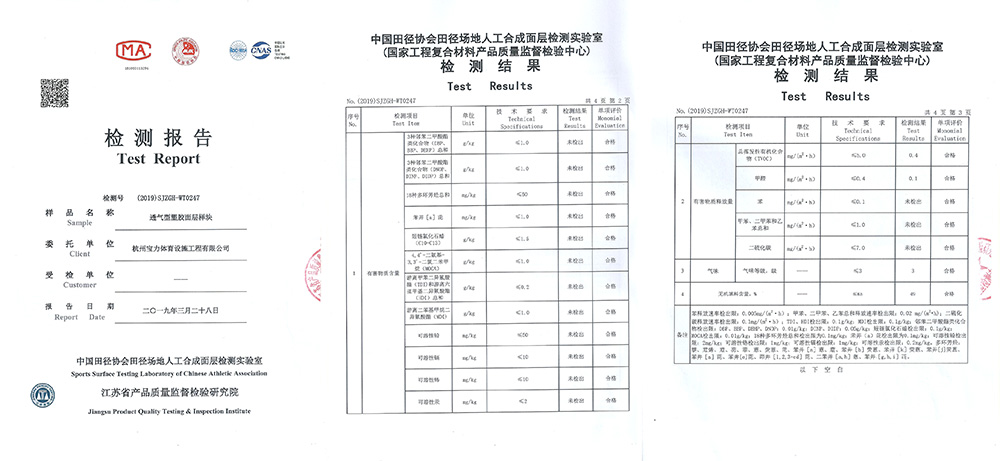 三大體系認證(iso9001質(zhì)量管理體系、ISO14001環(huán)境管理體系、ohsas18001職業(yè)健康安全管理體系)通過中國田徑協(xié)會指定檢測機構化學性能物理性能檢測
