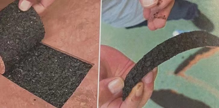 如果場地是瀝青基礎,且有坑洼處長期被水浸泡。瀝青里面的黑色雜質或油脂可能就會上浮到場地表面。