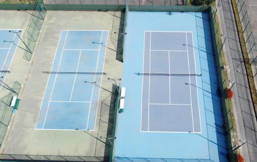 夏季高溫下硬地網(wǎng)球場(chǎng)維護(hù)需兼顧防滑與降溫。防滑方面,定期清潔表面去除藻類(lèi),使用防滑涂料或添加劑,確保排水系統(tǒng)暢通以避免積水。降溫可通過(guò)清晨灑水、覆蓋淺色遮陽(yáng)網(wǎng)、噴灑降溫劑或安裝噴霧系統(tǒng)實(shí)現(xiàn)。選擇淺色涂料反射陽(yáng)光,減少熱能吸收。