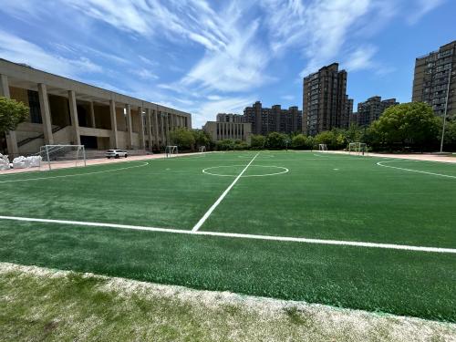 學校人造草坪足球場填充顆粒需符合環(huán)保安全標準,優(yōu)先選用無毒、耐候性強的EPDM橡膠或TPV材料。顆粒粒徑建議1-3mm,圓形結構以提升排水性和緩沖性,填充厚度需均勻(通常5-8mm),確保草絲直立及運動保護。
