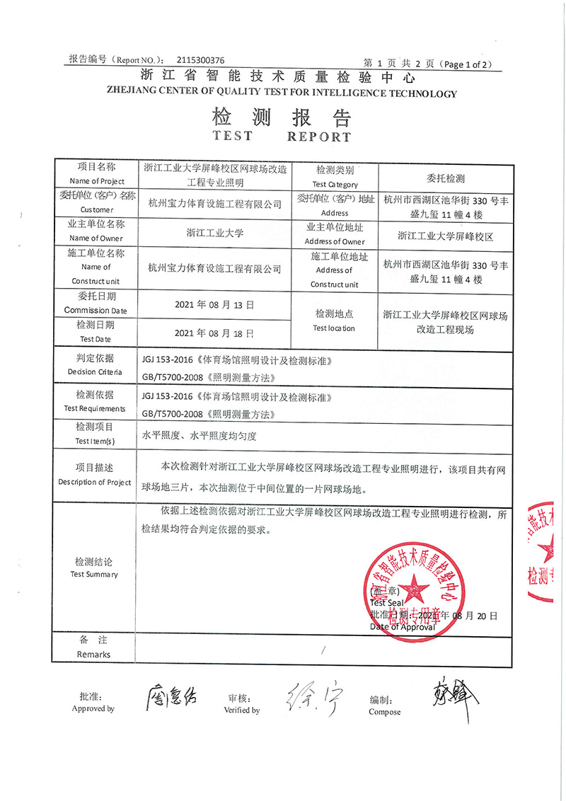 杭州寶力體育設(shè)施工程有限公司承建的浙江工業(yè)大學(xué)屏風(fēng)校區(qū)網(wǎng)球場改造工程,三片網(wǎng)球場均順利通過國際網(wǎng)聯(lián)ITF二星認(rèn)證。