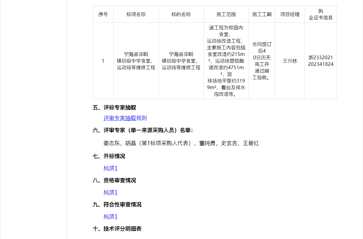 二、項目名稱:寧??h深甽鎮(zhèn)初級中學食堂、運動場等維修工程