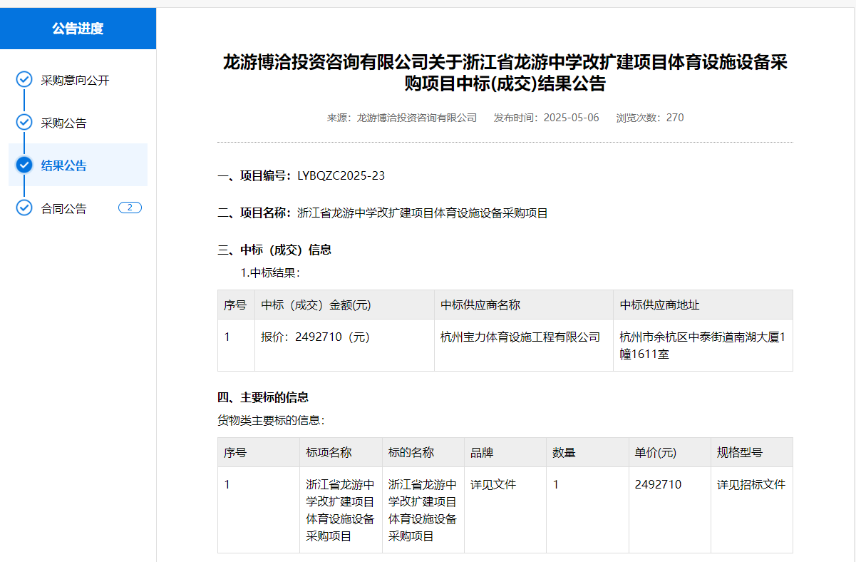 文章來源:浙江政府采購網 杭州寶力體育編輯,官網http://www.hk2.com.cn/,轉載請注明出處。