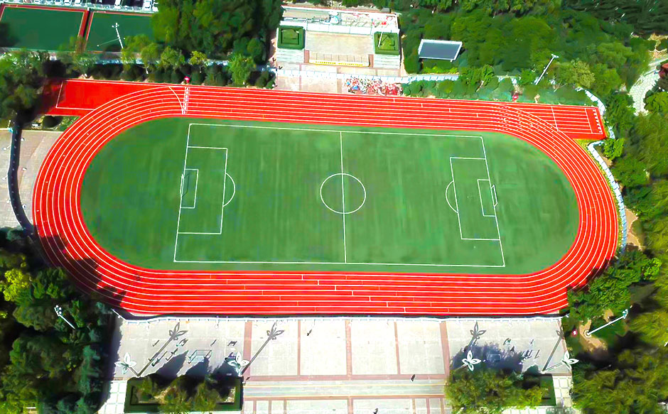 2024年由杭州寶力體育設(shè)施工程有限公司承建的舟山綠城南海實(shí)驗(yàn)學(xué)校400米透氣型跑道項(xiàng)目,采用國(guó)際標(biāo)準(zhǔn)藍(lán)色跑道搭配白色分道線;內(nèi)設(shè)綠色人工草坪足球場(chǎng),標(biāo)線精準(zhǔn)。周邊配建紅綠籃球場(chǎng)、標(biāo)準(zhǔn)化網(wǎng)球場(chǎng)及生態(tài)綠化帶。