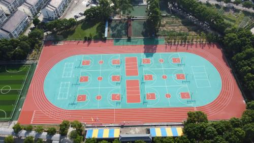 2023年由杭州寶力體育設(shè)施工程有限公司承建的杭州師范大學(xué)附屬中學(xué)400米半預(yù)制塑膠跑道,人造草足球場(chǎng)以及采用EPDM環(huán)保顆粒鋪設(shè)的多功能運(yùn)動(dòng)地面,為學(xué)校體育教學(xué)與活動(dòng)提供了安全、專業(yè)的運(yùn)動(dòng)環(huán)境。
