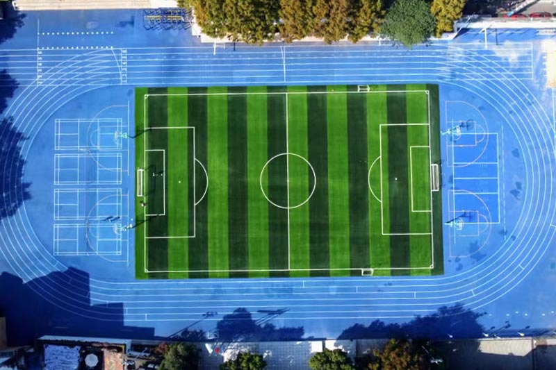 2024年由杭州寶力體育設(shè)施工程有限公司承建的舟山綠城南海實(shí)驗(yàn)學(xué)校400米透氣型跑道項(xiàng)目,采用國際標(biāo)準(zhǔn)藍(lán)色跑道搭配白色分道線;內(nèi)設(shè)綠色人工草坪足球場,標(biāo)線精準(zhǔn)。周邊配建紅綠籃球場、標(biāo)準(zhǔn)化網(wǎng)球場及生態(tài)綠化帶。