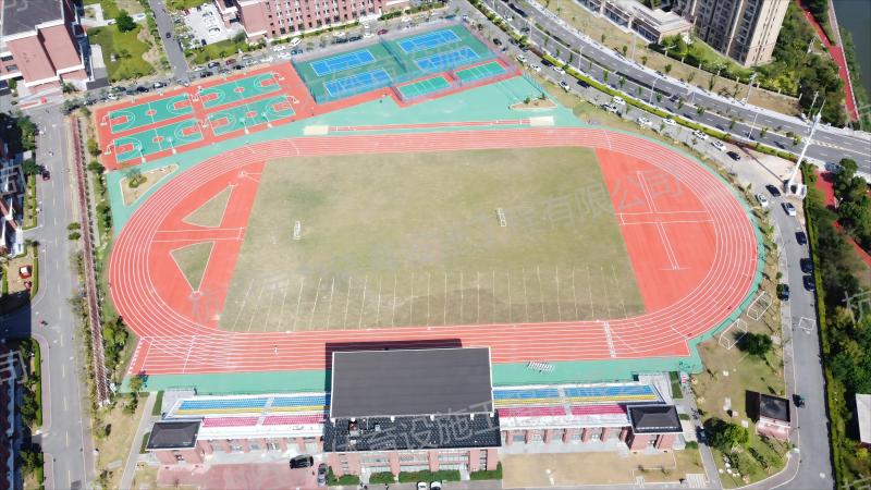 2024年由杭州寶力體育設施工程有限公司承建的溫州醫(yī)科大學洞頭校區(qū)項目,含標準塑膠跑道、多彩看臺及籃球場等,周邊紅磚建筑與綠化帶相映,營造活力健康的校園氛圍,滿足多樣化體育需求。
