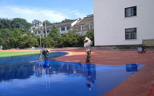 8月3日跑道基礎(chǔ)沖洗除塵,4日運動場瀝青路面攤鋪